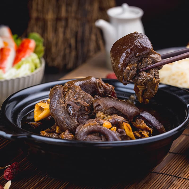 「王家燻羊肉食坊」は、2022年~2025年の4年連続でミシュラン・セレクテッドに選ばれたレストランです。看板料理の燻羊肉には、自家で飼育した2~3歳の成熟醃羊(熟成塩漬け羊肉)を使用しており、肉質は甘みが強く風味豊かです。稲殻で24時間じっくりと燻し、中薬材や米酒の香りがゆっくりと溶け合うことで、コクのある黒色の肉スープへと仕上がります。皮付きの羊肉は口に入れた瞬間にとろけ、スープはまろやかでコクのある深い味わいがあり、多くの食通が燻羊肉の美味しさを求めて訪れます。