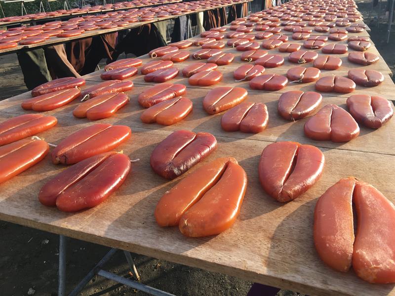 Located in Ziguan Dist., Kaohsiung City, Kezailiao was once a fishing village which focused on oyster raising and fish catching in the past. In order to maintain piscatorial livelihood and accelerate fishery modernization, Kezailiao Fishing Port was constructed to drive the development and prosperity of coastal areas in southern Ziguan in the year of 1988. The increase of yield of catch during the recent years has empowered Kezailiao Fishing Port to win the championship of nation’s catch of the day. It has become the essential place of origin of mullet roe in wintertime. Countless fabricated products and processed foods such as mullet roes, mullet milt and mullet gizzards can be found inside the tourist fish market during this time of the year. Many visitors will come to purchase the items as gifts before Chinese New Year. Furthermore, a number of restaurants which provide valet cuisine services and snacks are also available. Sashimi and oyster omelet pancake are two of the most popular dishes. These delicacies are sumptuous and luscious. You must not miss them.