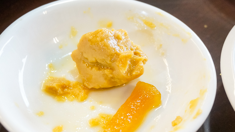 The eggs should be steeped in the tea soup for 3 days, in order to make them tastier, the yolk cannot be fully cooked but soggy and runny. The most challenging step is to peel the egg because it is easily destroyed due to the texture; therefore, it is easily broken. You may want to pay attention to the owner’s skills to make it right.