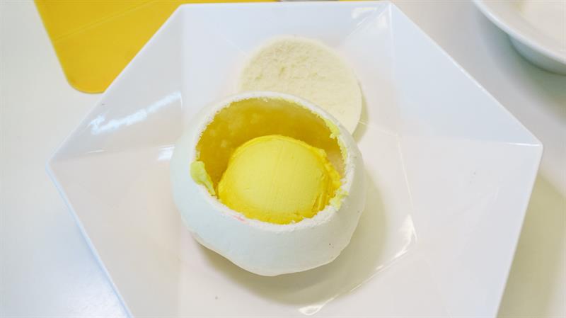 ▲The hollow bun cake was filled with two cones of mango ice cream so the bun cake has additional sweet and creamy flavor to its nostalgic taste.