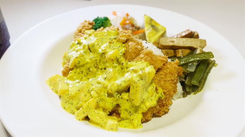 The dishes that utilize mangoes are worth mentioning. “Japanese style Pork Chop with Mango Tata Sauce” has original tata sauce seasoned with mango so that the sauce has a tint of aroma and slight sweetness from mangoes. If you happen to eat the mango grains, the slightly sour and juicy mangoes mingling with the tata sauce is like a surprising symphony. The slightly sour taste stimulates the appetite, together with the properly fried pork chop that has a thin and crunchy crust will definitely bring a smile to your lips!
