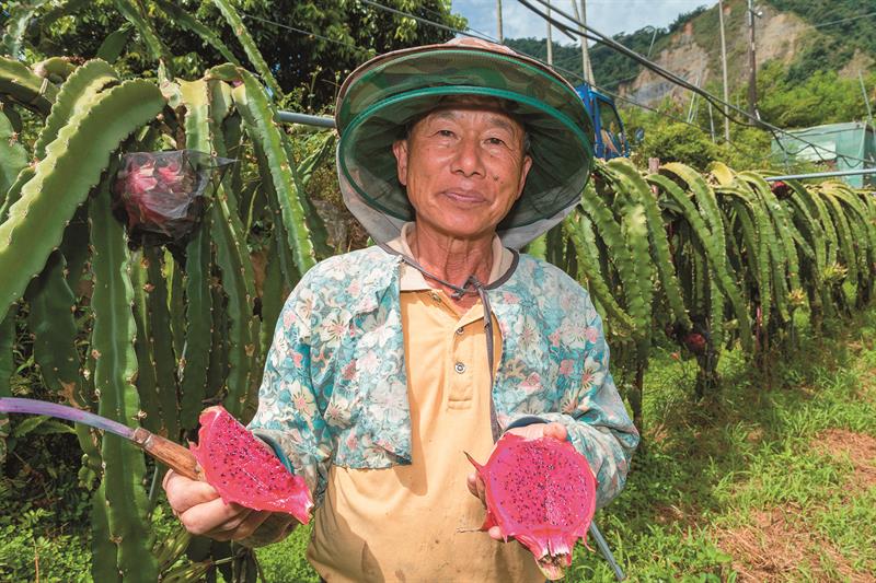 「天山嶺オーガニック農場」オーナーの黄添来さんは農業に従事しすでに58年たちます。農薬のない時代から農薬を撒く時代へと入りましたが、38年前黄添来さんは農薬や除草剤が土壌と生態を破壊することを発見し、ただちに使用を停止したのです。はじめの1年は果樹園で収入を得ていましたが、やはりオーガニックの道を歩むことにこだわったのです。そして生態池を掘りミミズを放し、成長したカエル類に食べ物を提供しました。1,2年後土地の力が戻り、農作物が豊作になり始めました。黄添来さんの農場はオーガニック認証を通過し、地元で発のオーガニック農場となりました。毎週中興大学のオーガニック農業フェアで自家栽培のヘチマ、ドラゴンフルーツ、サツマイモ等のヘルシーで毒性フリーの農産品を販売していますが、どれもすばやく売り切れてしまいます。たくさんの人が外国からがボラバイトにやってくるようになりました。農場に来れば、黄添来さん土地を大切にする心を聴きながら、果物狩りをしながら農業体験に参加でき、絶対に感動でいっぱいになります。