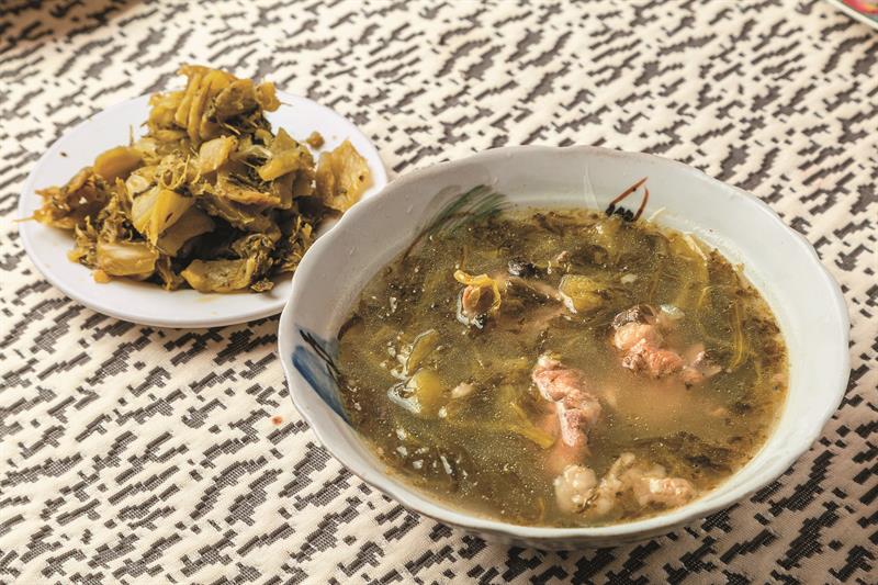 「哈客張楽活園」は退職した学校の教務主任である張弘忠さんが経営しています。園内では様々な種類の野菜や果物と草木が栽培され、節句や祝日ごとにローゼル狩りや蜜漬けの作製を行っています。家庭料理がお好きなら、張さんに予約を入れて、彼女の得意な家庭料理を心行くまで楽しむこともできます。自家栽培の甜菜根(サトウダイコン)、ローゼル、蒲瓜(ユウガオ)、ミニキュウリ、牧草、サツマイモなどの食材を使い、3色の野菜麺を作製しています。自家製のトマトのミートソースをかければ、なめらかなおいしさが味わえます。自然発酵によるカラシナで作った酸菜排骨湯(酸菜入りスペアリブのスープ)は、穏やかな味わいで、食べるともう1杯食べたくなるおいしさです。地元の特産品の梅や乾燥タケノコなども料理に取り入れており、どの料理もおいしく心がこもっています。