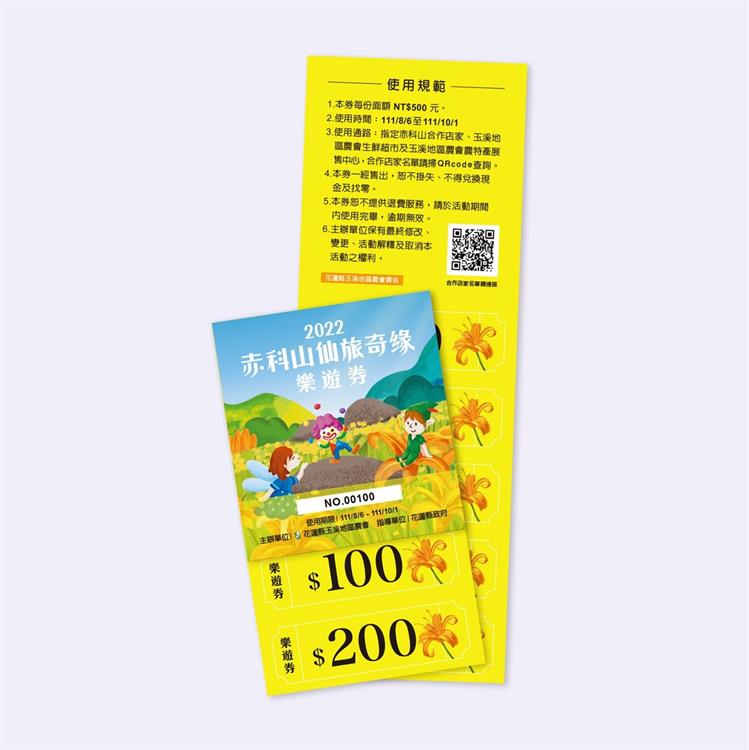 玉溪地區農會與赤科山店家合作推出專屬於赤科山上的消費券,只要花費330元就可在赤科山上合作店家消費500元!不管是購買農產品、伴手禮還是到餐廳用餐、體驗課程皆可使用,在旅行前於線上購票,實體票券就會直接寄給您,讓您的旅程更省錢、也更便利~