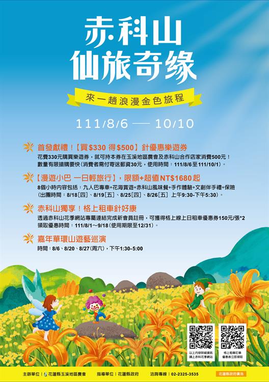 ※請預先確認交通方式,並及早購票,本活動僅支援從玉里火車站至赤科山往返之交通