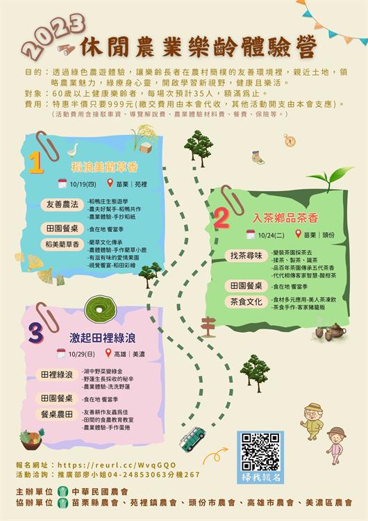 ※活動細節請洽主辦單位,農業易遊網僅供資料蒐集與整理;活動可能因颱風、豪雨特報等臨時狀況延期或取消。