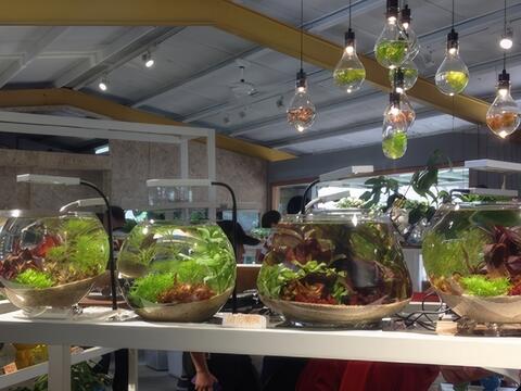 農場內也特別設計水草創意料理可供個人或團體用餐,餐廳配合主館同樣是以清水模方式打造而成,簡單、環保又時尚,勝洋水草以「重視食材、簡單料理、美味又不複雜的味覺旅程」為宗旨,創作出各式以水草為主題的豐富菜色,同樣讓人為之驚豔。在返家前亦可至水草精品館逛逛,有用水草製成的燈具、有水草生態瓶與各式各樣利用水草製成的伴手禮品,適合做為紀念品或贈送給親朋好友哦!