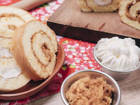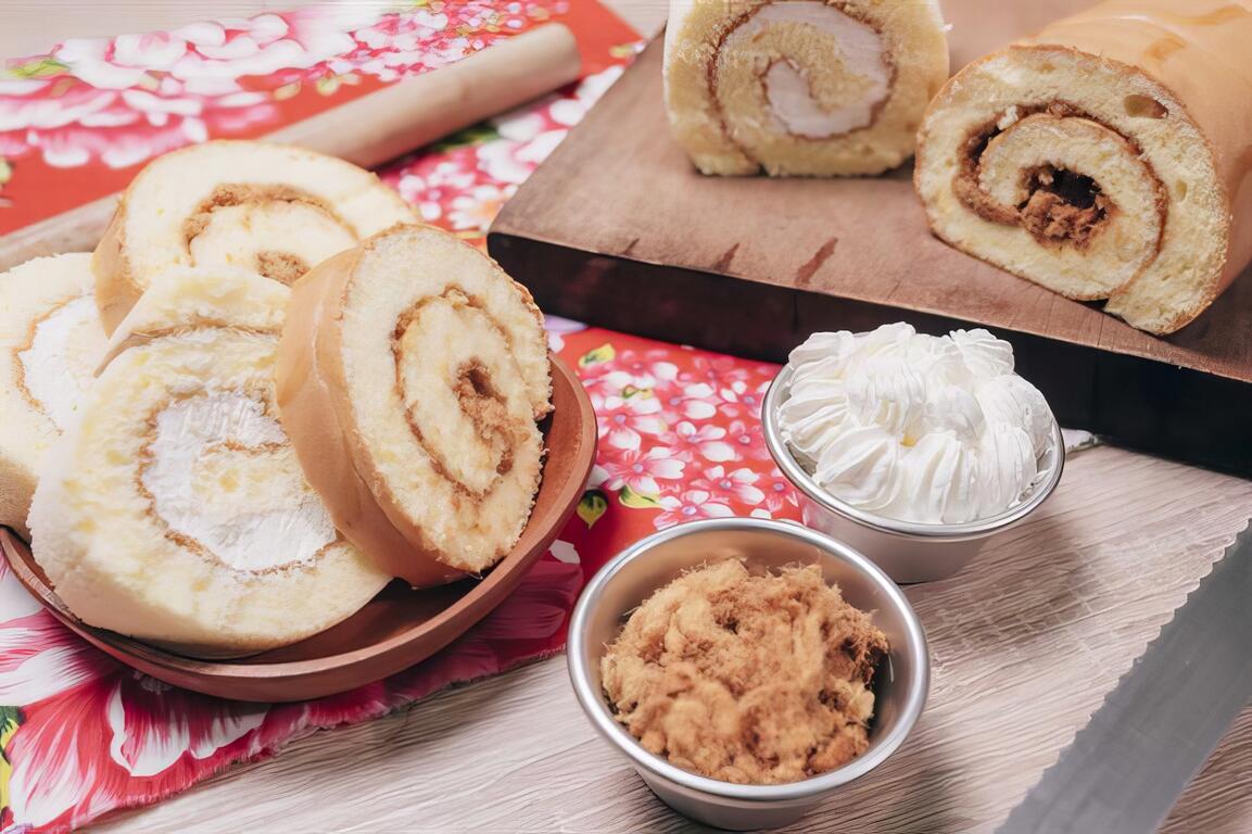 瑞士捲是呈現創意、在地食材以及在地口味的品項,用平鎮所生產的秈香米米穀粉來取代麵粉,使得蛋糕帶有一種芋頭米的香味,風味獨特。內餡除了原味外,也用肉鬆和紅豆餡迎合在地口味需求,是午後甜點的好選擇。