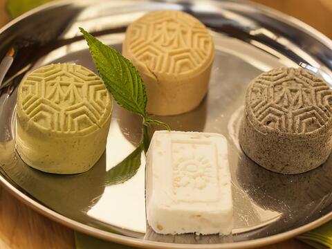 店內手作體驗是壓製自己的小小狀元糕,自己搓揉綠豆、麻芛、黑芝麻三種口味的半成品,讓餡料更柔軟之後再放入小的木頭模具中,用力壓緊壓實後再脫膜,自己的下午茶點心就出現在眼前了。壓製的點心小巧可愛,再加上是自己DIY手揉的,喜愛指數直線飆升。
