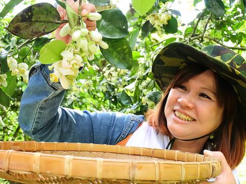 這天我們來到三富休閒農場,只見工作人員俐落摘取含苞柚花、忙碌去蒂、取下花瓣、雄蕊及雌蕊,一問之下得知清早採下來的含苞柚花,其花苞、雄蕊可用來泡茶,花蒂則可用來泡澡,還可以開發出許多附加產品,例如香氛瓶、柚花茶、甚至將柚花入菜。傳統農業有了新發展,也讓旅客的遊程有更豐富的在地玩法。