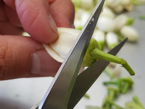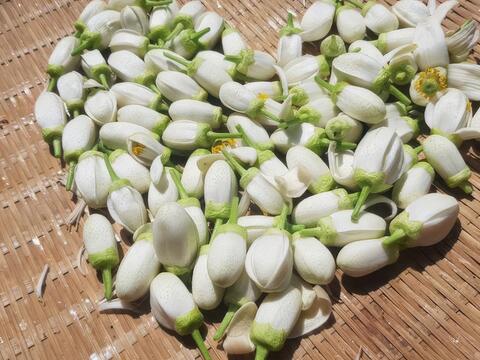 摘下柚花後,必須立即去蒂、分蕊進行封存,過程全部倚賴人力。