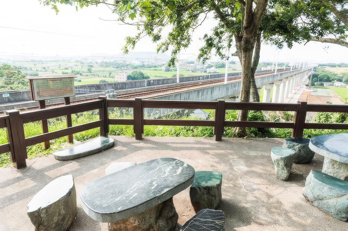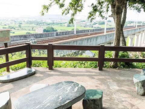 這是觀賞高鐵的好位置,觀景台距離高鐵列車不過數十公尺,列車用百公里的速度呼嘯而過。即使坐過高鐵,也未曾在這麼近的距離看列車狂奔。為了讓大家知道何時會有列車出現,一旁貼有時刻表,表上時間就是列車到來的時間。根據在地線民指出,如果有可愛的小朋友揮手歡迎高鐵列車,駕駛員會鳴一聲喇叭回應喔!