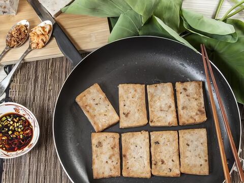 除了紅棗香腸,餐館的香煎芋糕也是一道必點的經典美食。當地新鮮芋頭製作、外皮煎得酥脆且內裡軟嫩,搭配蝦米與油蔥調味,香氣濃郁,吃上一口就有十分滿足!