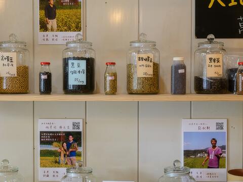 九四友善小鋪結合了「在地友善農產」與「散裝商店」的概念,提供苗栗周邊鄉鎮的優質友善農產。這裡可以找到公館的紅棗乾、銅鑼鄉的有機米,以及後龍鄉的黑豆等,所有商品都以散裝方式販售,消費者可以依照需求選購,甚至可以自備容器來購入,店家也會準備可多次利用的容器。