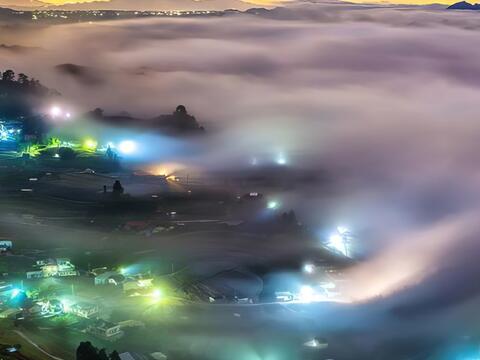 苗栗「馬那邦休閒農業區」的「楓葉地圖」民宿,視野非常好,放眼望去滿是梯田草莓園,對面山頭的「薑麻園休閒農業區」及卓蘭的鯉魚潭水庫也能清楚望見,還能遠眺台中港、火力發電廠等。這裡不但看得到壯觀的雲海流瀑,若逢楓葉轉紅之時,滿山楓紅的景致非常迷人。4、5月則是由螢火蟲和桐花接力登場,民宿庭院就能見到螢火蟲飛舞。