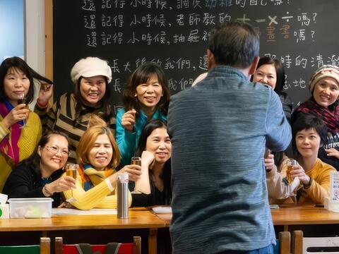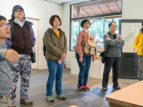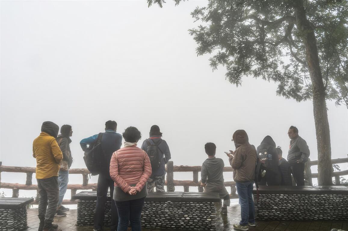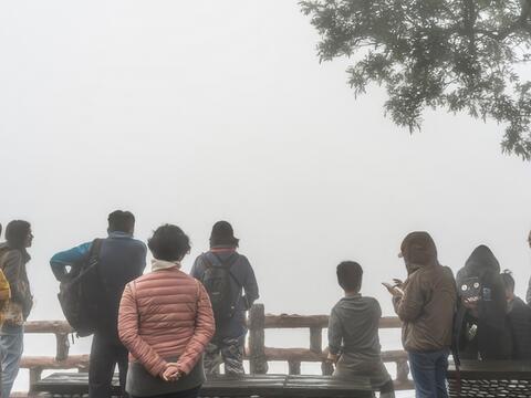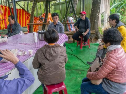 圖說:大山背樂善堂,當天起大霧,只能聽莊凱詠介紹遠方的美景,想像頭前溪流域風光。