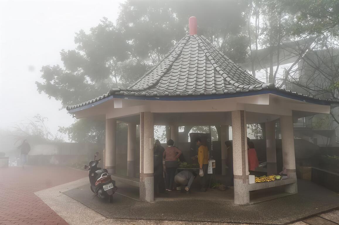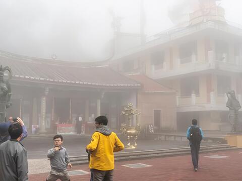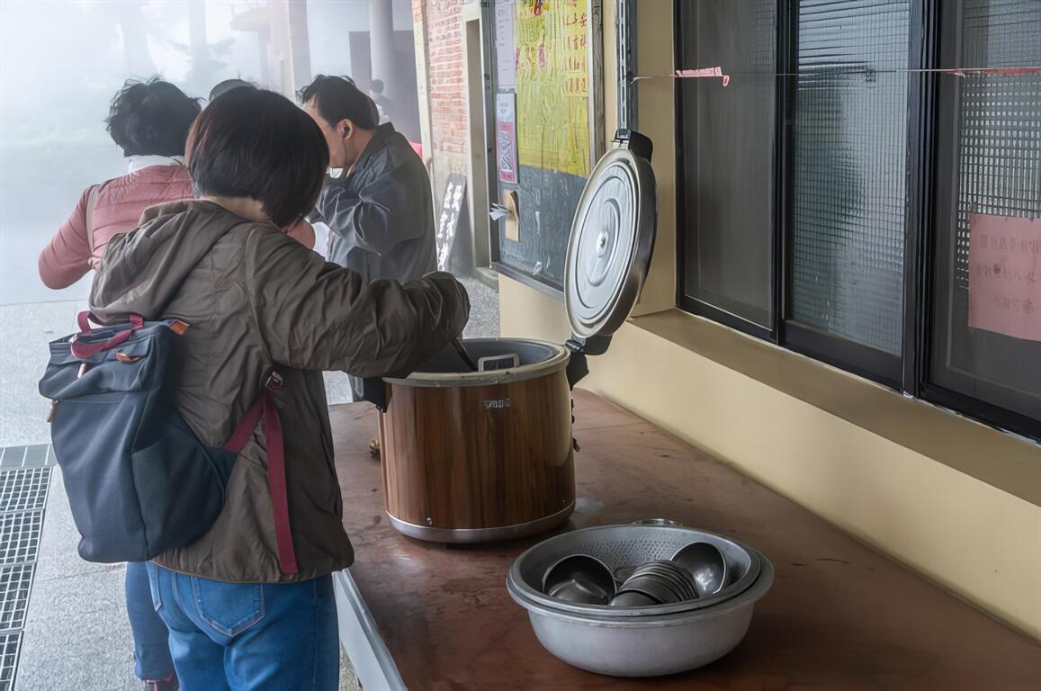 圖說:大山背樂善堂,當天廟方提供的熱綠豆湯,讓在這片大霧中湧進了一絲暖意。