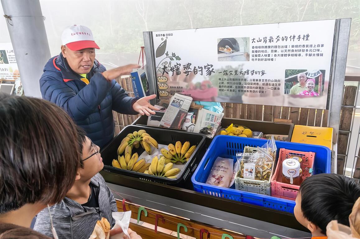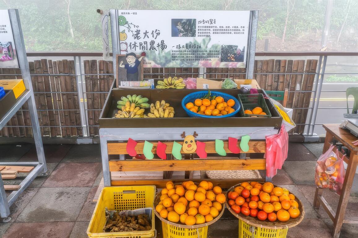 圖說:大山背農民市集,每個進駐攤位都會有清楚的識別設計,都是由暑期實習生和在地農民一起共同發想出來的(圖為老大份休閒農場)。