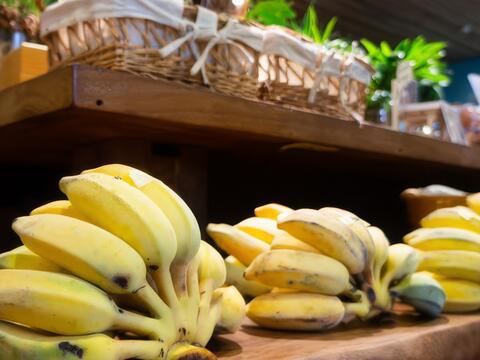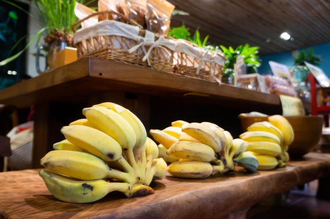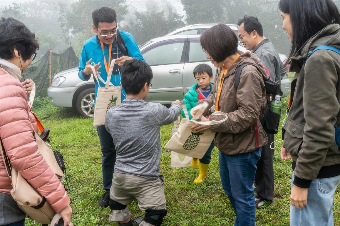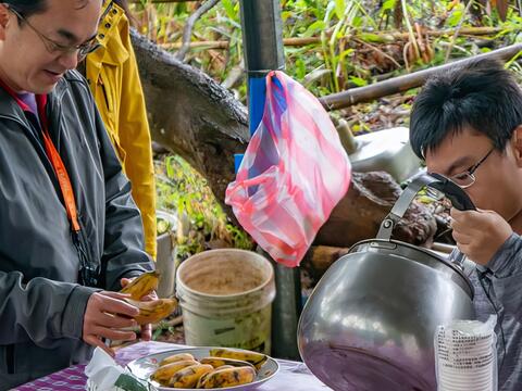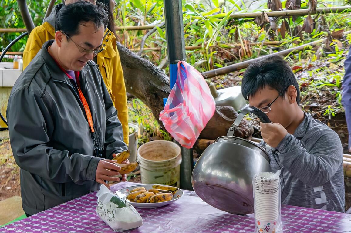 圖說:老大份休閒農場,負責人楊名遠提供最有機的山蕉給我們品嘗,同時提供自己種的台茶20號銀香,簡單烘培後成為白毫烏龍茶飲用。