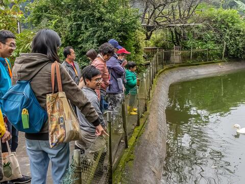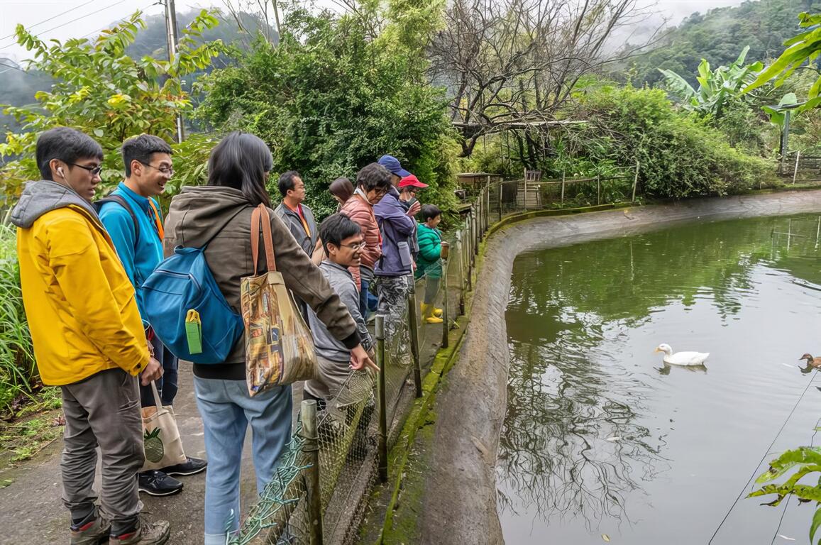 圖說:老大份休閒農場,採完後大家帆布袋滿滿,往上方的水池稍做休息。