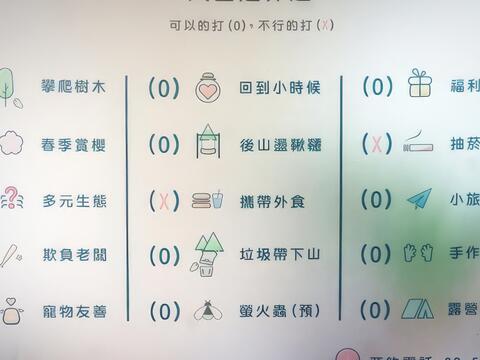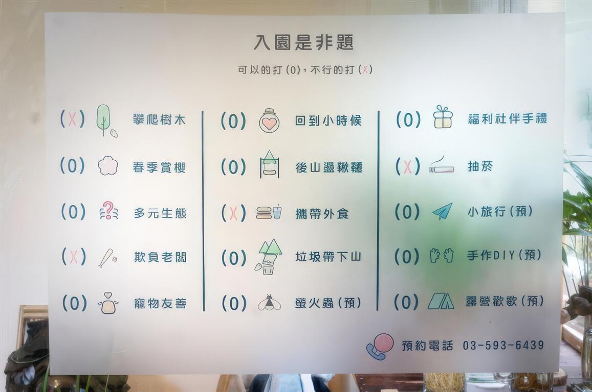 圖說:大山北月,入園注意事項變成考卷是非題,一切都變得特別有趣。