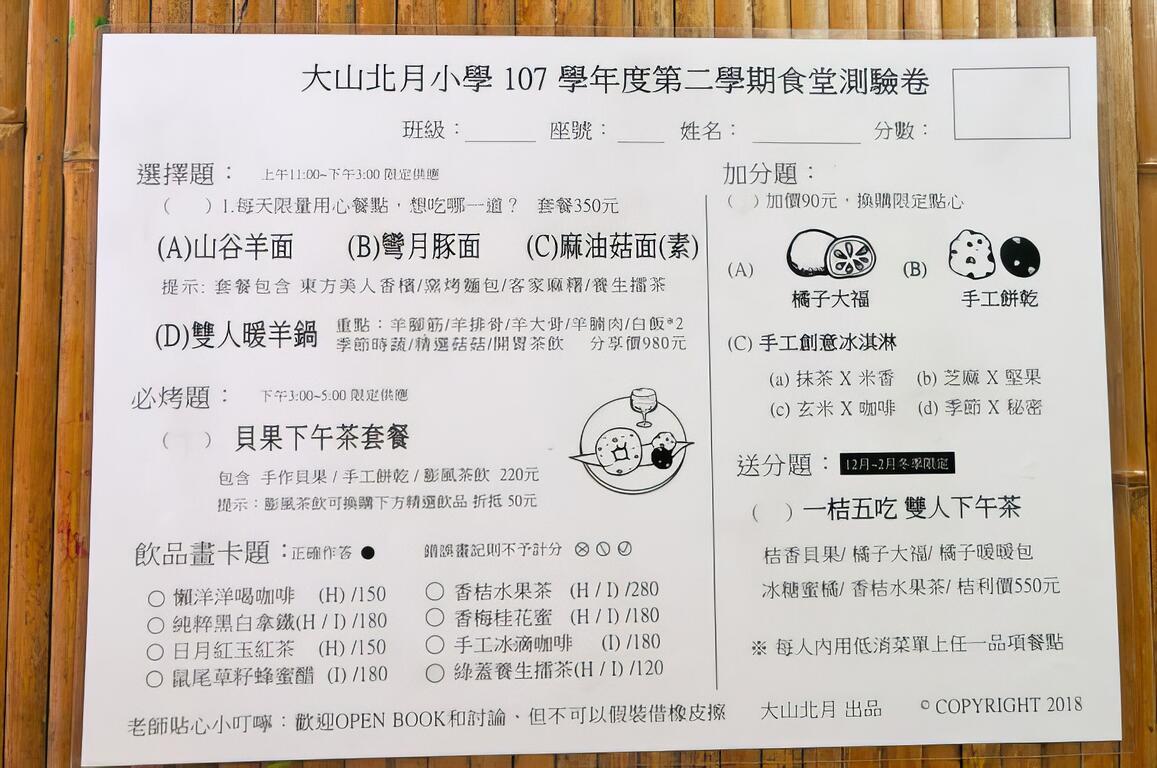 圖說:大山北月,餐廳2018最新菜單,配合不同季節與當令食材進行調整,最特別的是冬季限定一桔五吃也是本行程的重點。