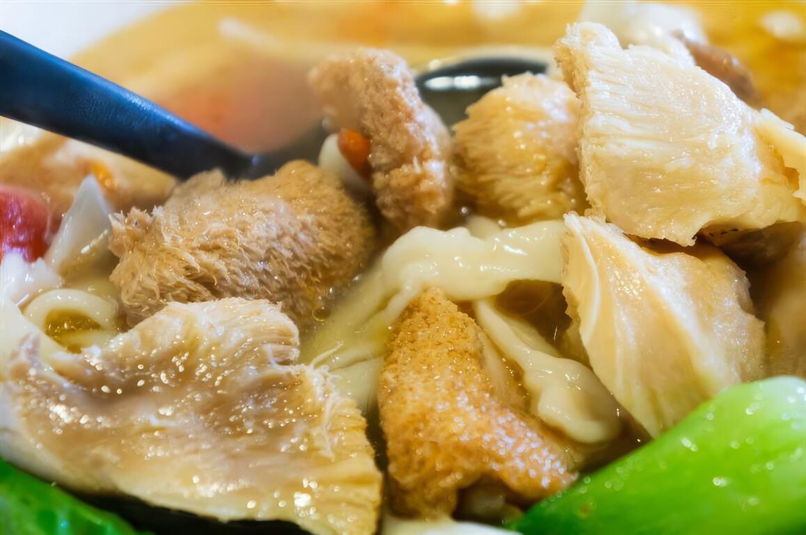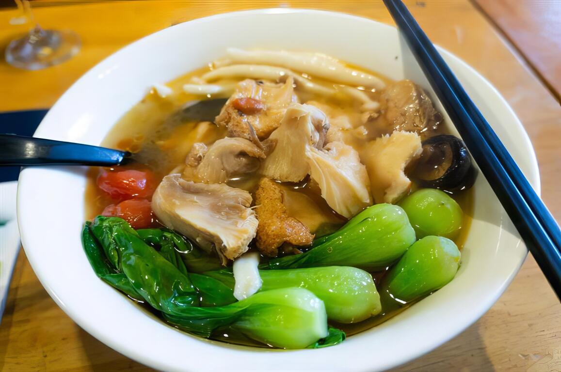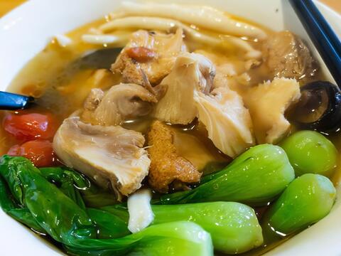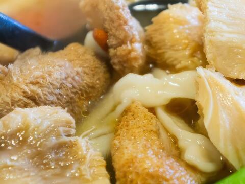 圖說:大山北月,我點了套餐C餐麻油菇面(素),猴頭菇結實麻油香氣飽滿湯頭樸實,麵條也不會過於軟爛有嚼勁。