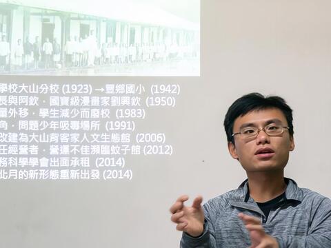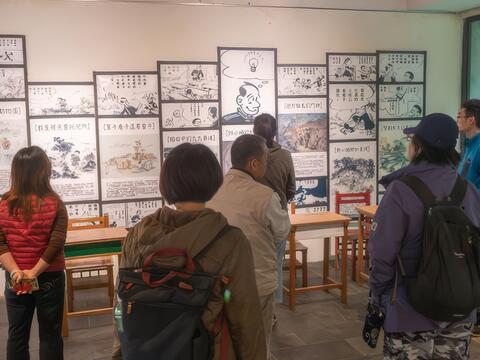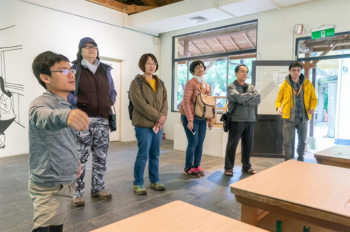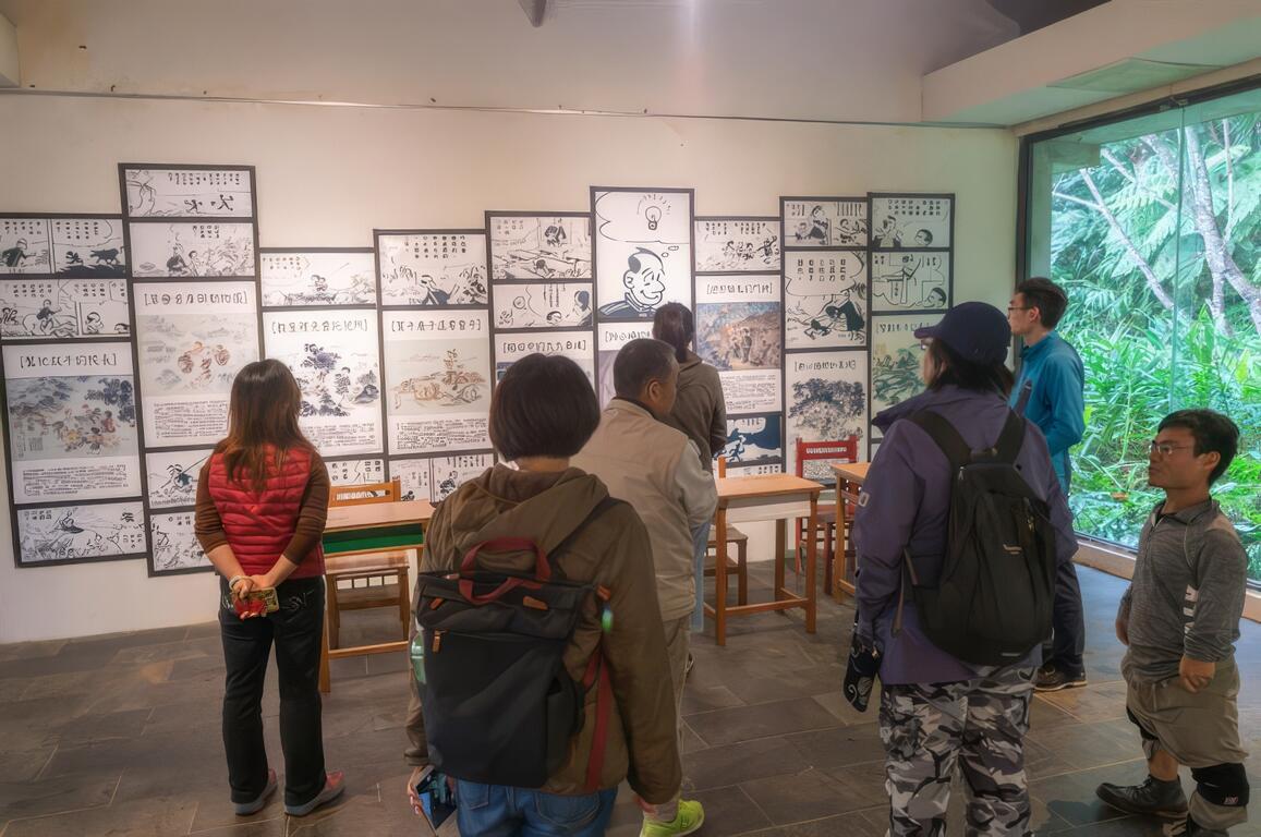 圖說:大山北月,莊凱詠引導至旁邊的劉興欽故事館,分享這位傑出校友的故事與漫畫。