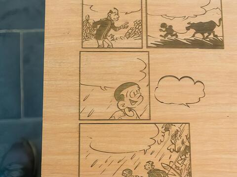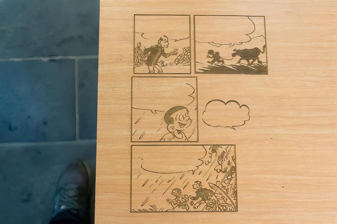 圖說:大山北月,劉興欽故事館的課桌椅上也有漫畫,預留的空白對話框發揮想像力。