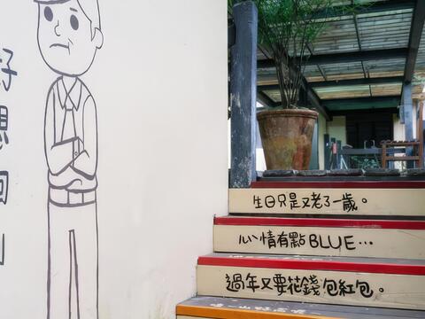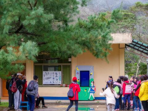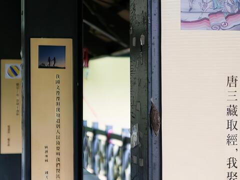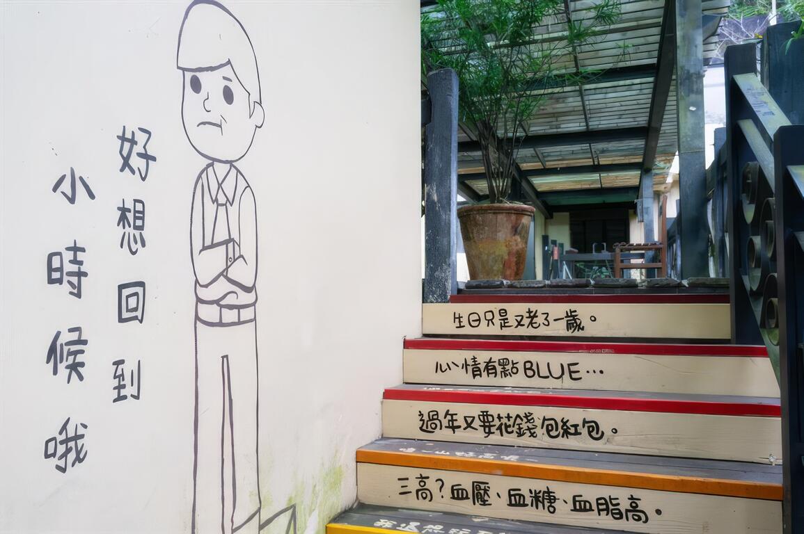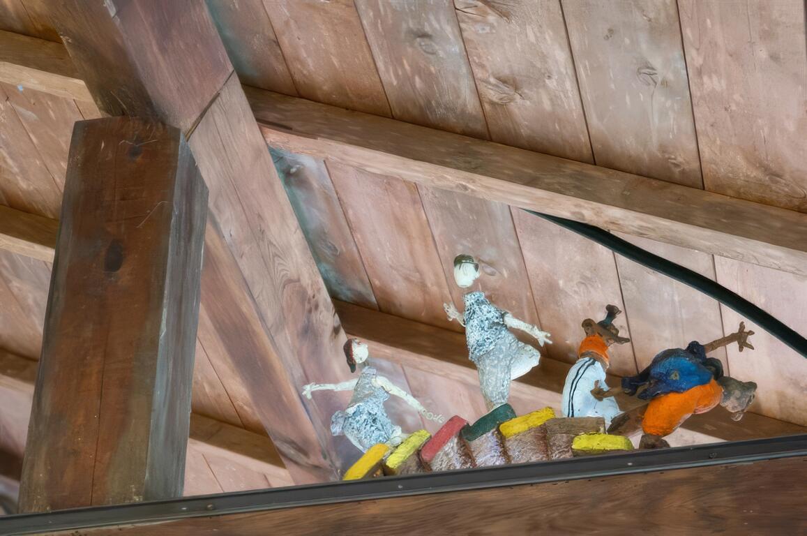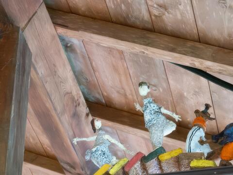圖說:大山北月,屋外橫樑上前駐館藝術家作品活靈活現的呈現出童趣。