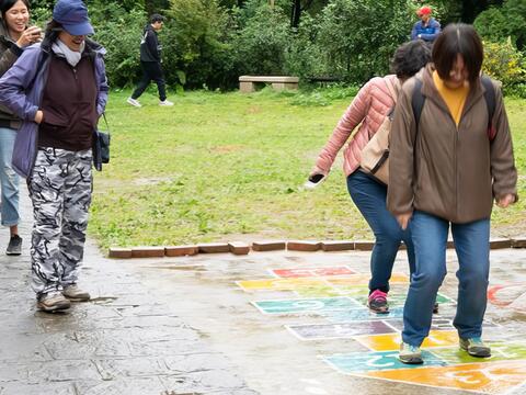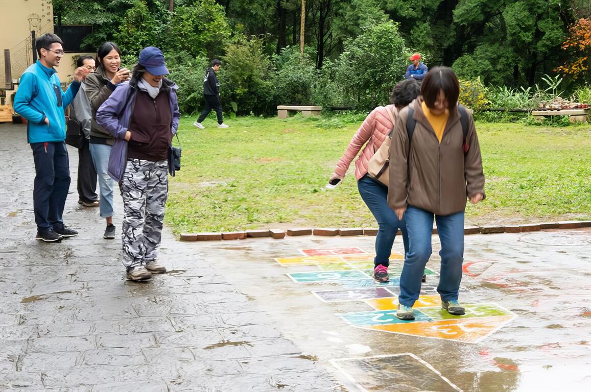 圖說:大山北月,水泥地上的跳格子,是我們童年無法忘記的趣味。