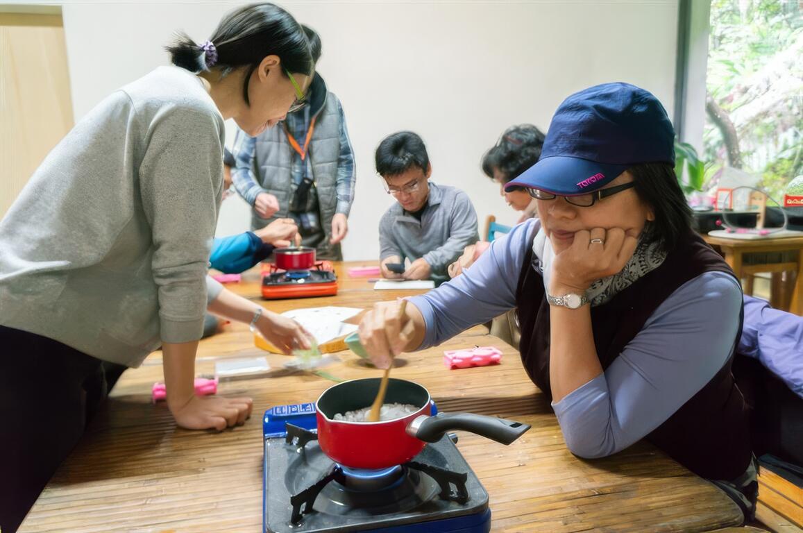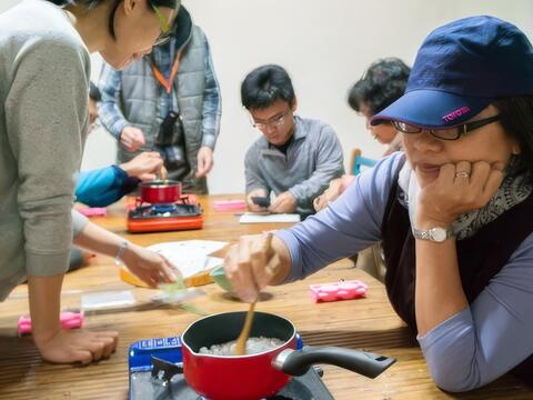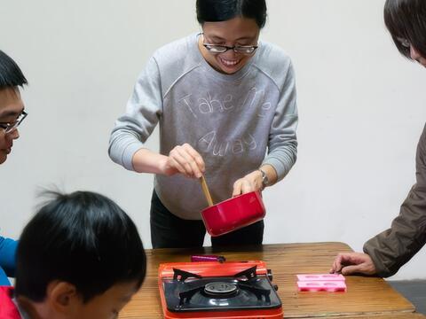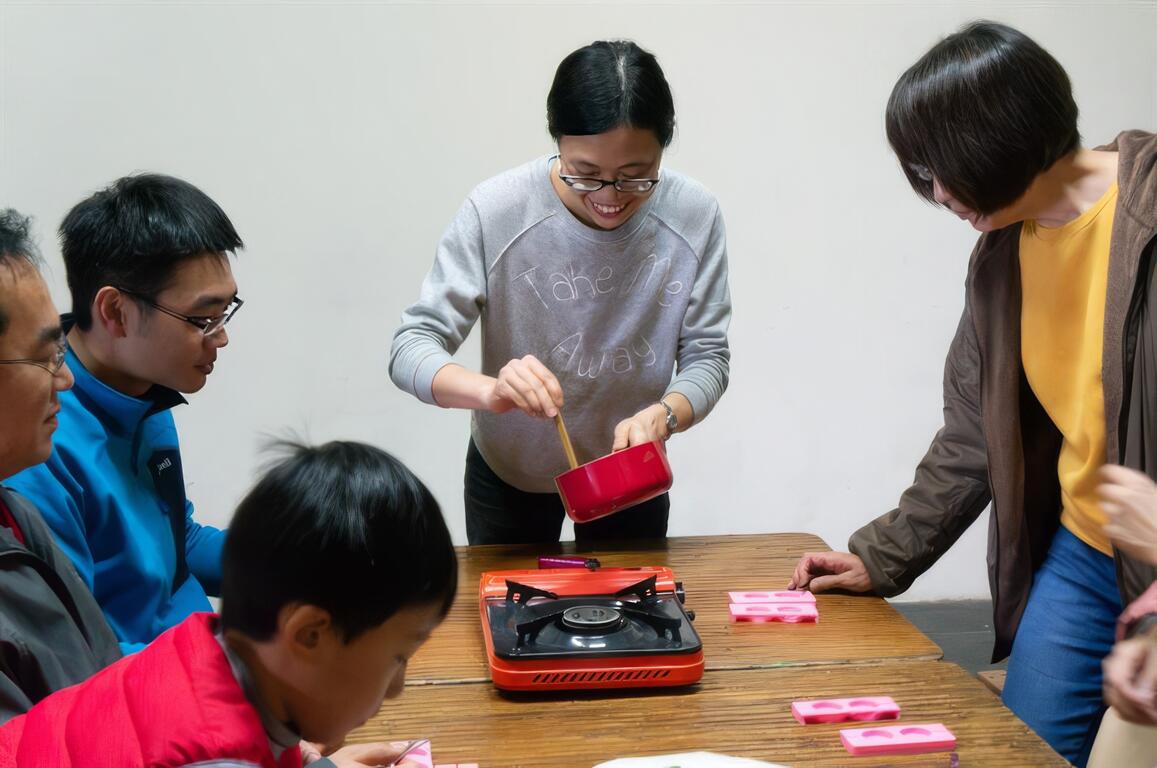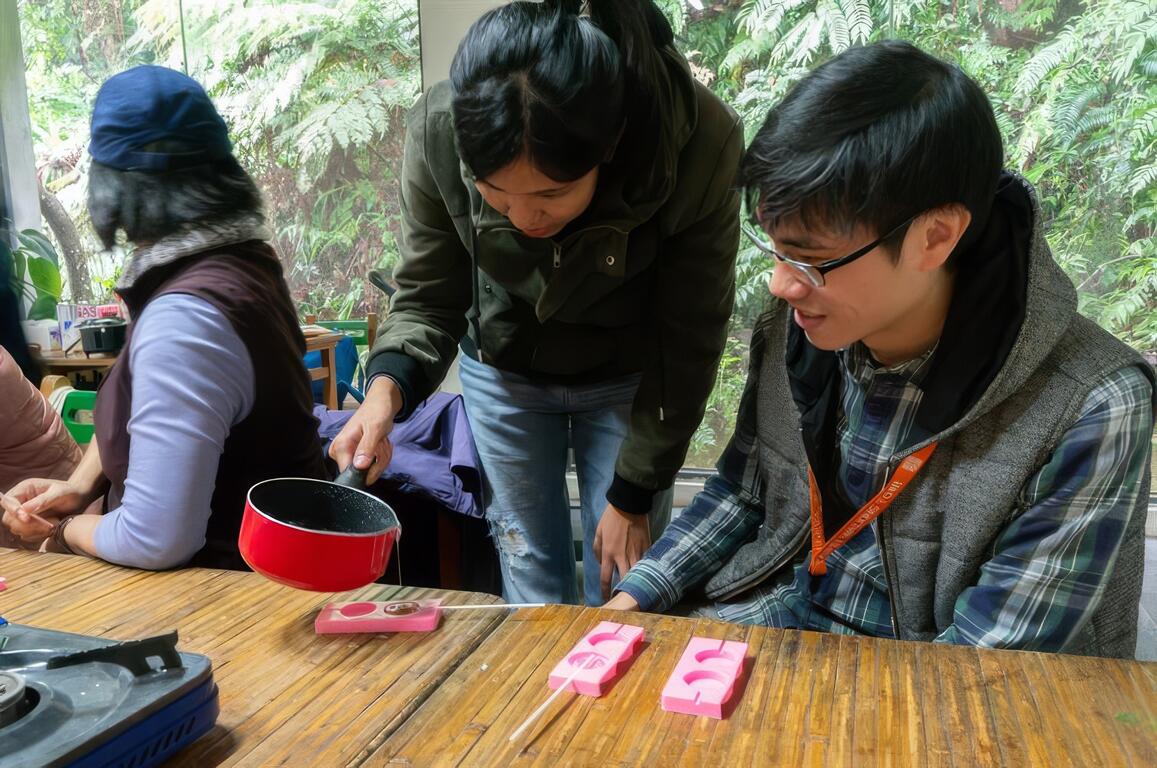 圖說:大山北月,押花棒棒糖DIY,固狀食用糖加熱後經過攪拌變成液狀。