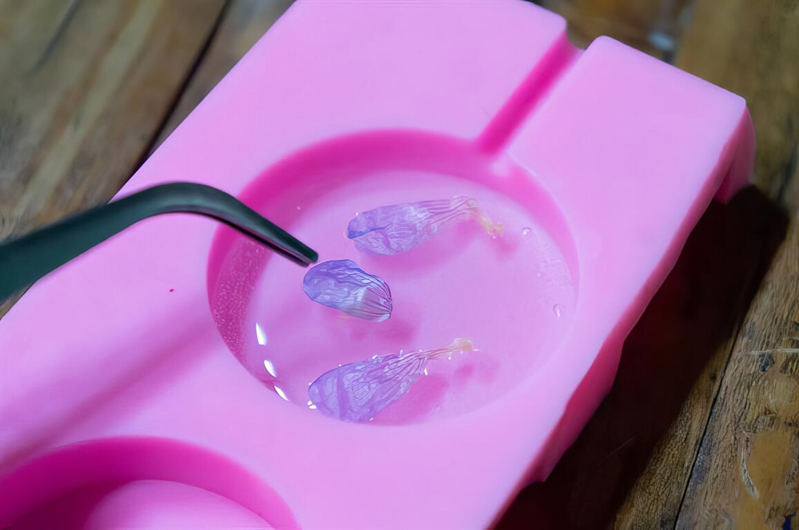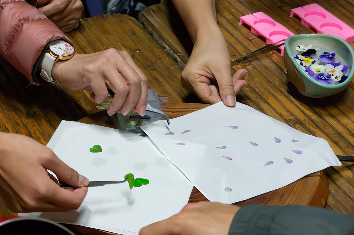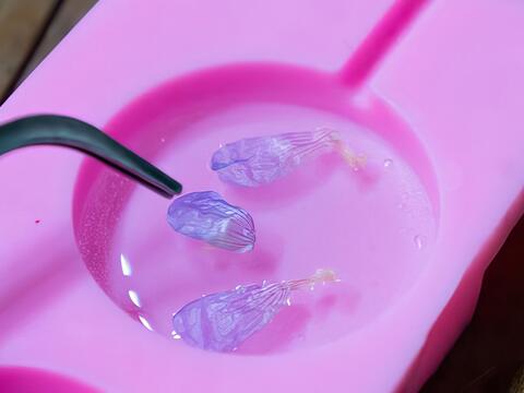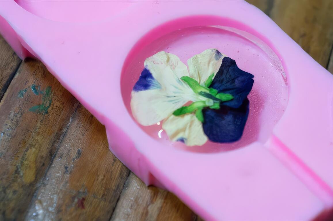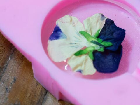 圖說:大山北月,押花棒棒糖DIY,花瓣放置上去後再放上塑膠棒,並將液狀食用糖倒入至模具中填滿剩餘高度。