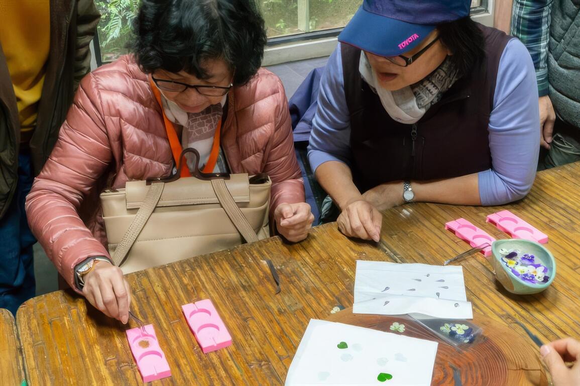 圖說:大山北月,結束導覽後再度回到室內,開始今天的DIY活動。很特別的地方,是「押花」的棒棒糖,這可是我第一次看到並體驗的活動。
