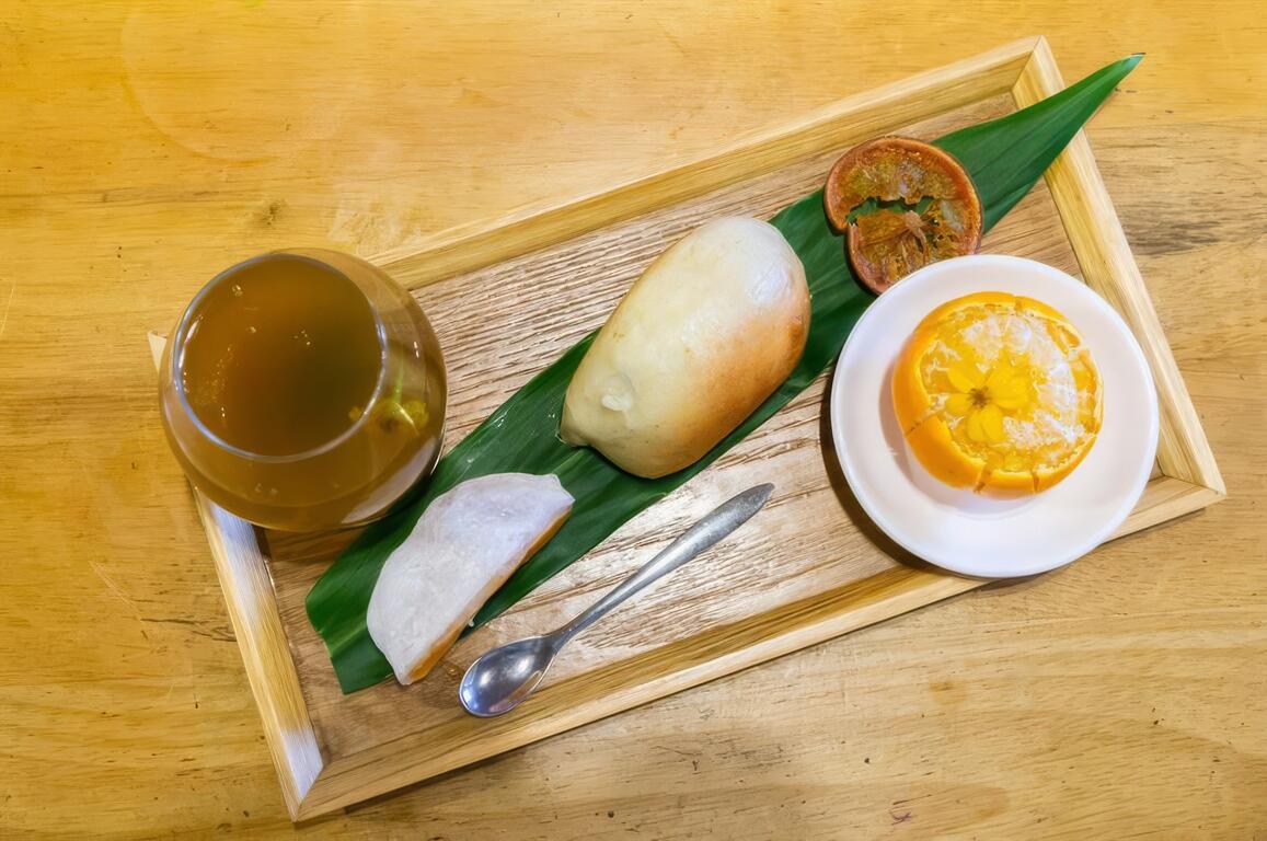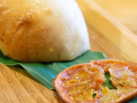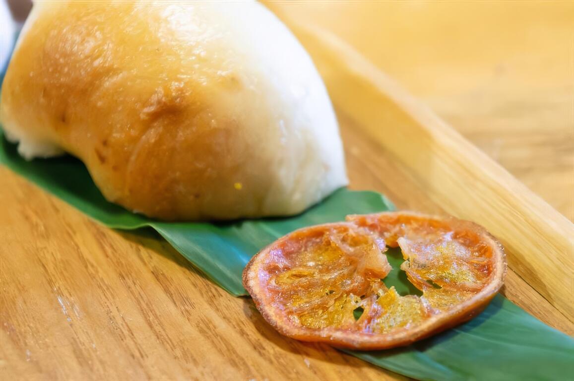 圖說:大山北月,一桔五吃-桔香貝果,筆者對於貝果的印象總是難以咀嚼,但經過長時間酵母發酵、並加入柑橘醬提味後貝果,吃完後連忙詢問是否可買回家,可惜手作就是限量下次請早。
