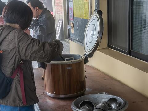圖說:大山背樂善堂,當天廟方提供熱湯給來訪的遊客免費享用。