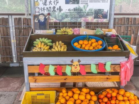 圖說:老大份休閒農場,現場提供摘採三種柑橘各限五個;一旁還有整棵被企業老闆認養,提醒摘採時不要採錯也歡迎大家認養。