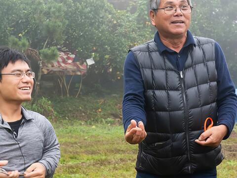 圖說:老大份休閒農場,負責人楊名遠與介紹休閒農場的歷史與環境。