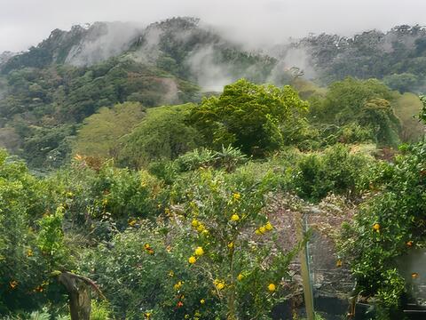 圖說:老大份休閒農場,剛好霧氣過去,遠眺煙嵐飄渺,如世外桃源。