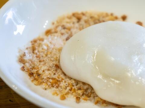 圖說:大山北月,套餐中的客家麻糬,微熱的麻糬沾上花生糖粉,不死甜且不黏牙容易入口。