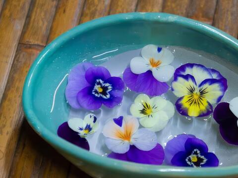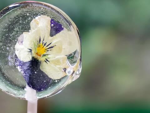 圖說:大山北月,押花棒棒糖DIY,液狀食用糖靜置稍微固態後,再將花瓣放於上面。
