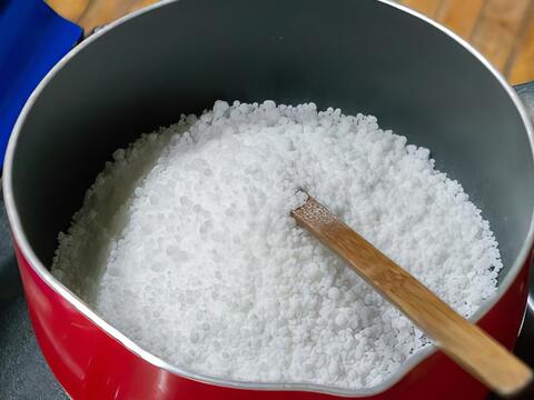 圖說:大山北月,押花棒棒糖DIY,一開始先倒入大量的固狀食用糖。