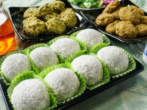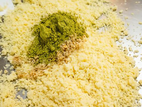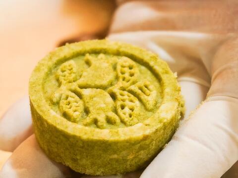 老闆娘擁有獨特的美食手藝,喜歡與遊客一同動手製作糕點。這項綠茶糕DIY活動雖然步驟簡單,但卻充滿樂趣。在活動中,所有的備料工作都已經為遊客準備好,只需要將綠豆仁與綠茶粉均勻混合,然後選擇自己喜歡的模具,輕輕壓模後就能品嚐到親手製作的美味綠茶糕。