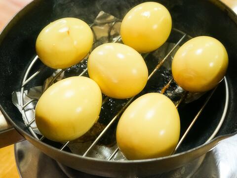 製作茶燻蛋的過程中,遊客將使用由老闆提前浸泡在茶汁與醬汁中2至3天的半熟蛋進行燻製。將蛋放在鋪有鋁箔紙的鍋爐中,加入茶葉與紅糖,輕輕燻製2分鐘,便能完成這道美味的茶燻蛋囉!燻製完成後,溏心的蛋黃濃稠如黃金,與獨特的燻茶香交織,令人一試成主顧。