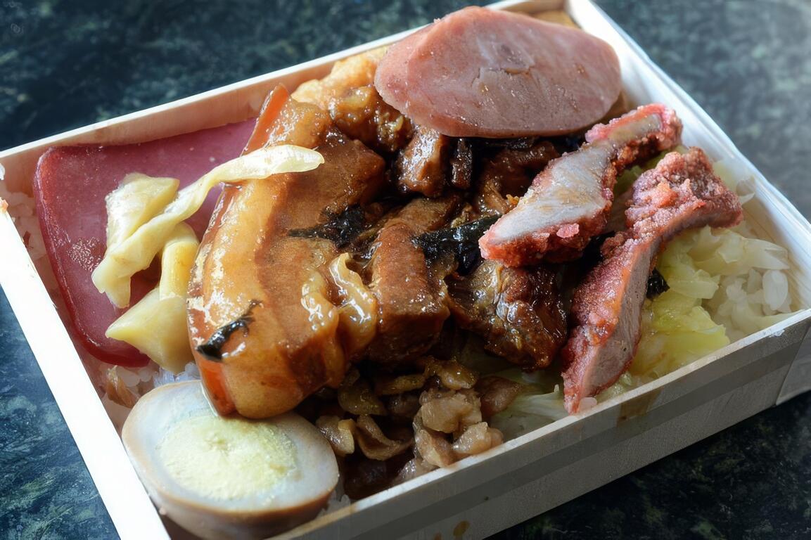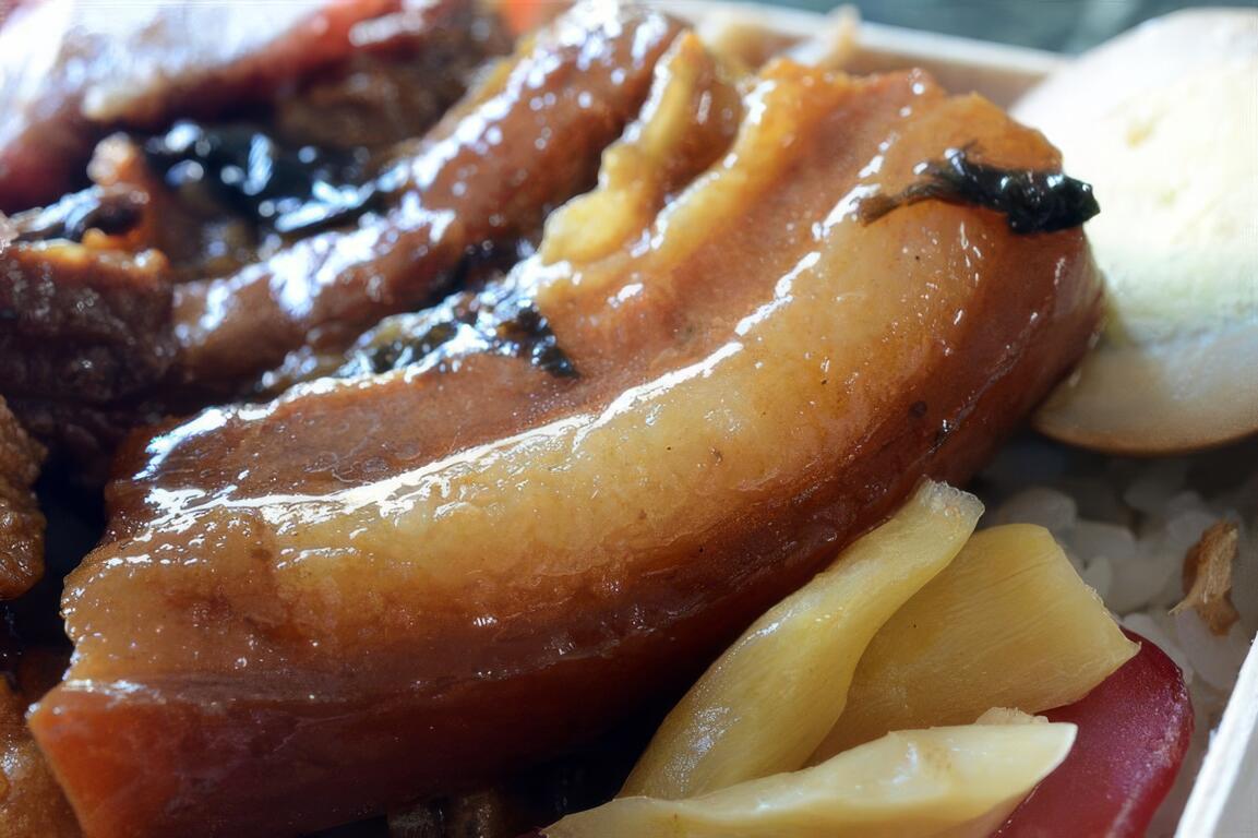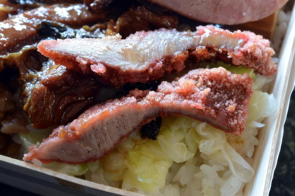除了電視節目「食尚玩家」曾採訪過,源昌關山便當的「梅干扣肉便當」還得過2012台東便當節的HAKKA便當王殊榮,圖片是招牌梅干扣肉便當。