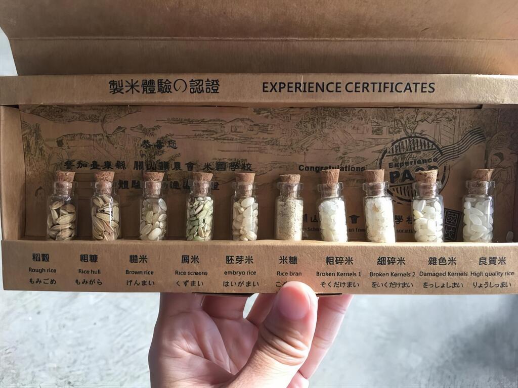 享用完美味的午餐後,驅車前往「關山鎮農會休閒旅遊中心」,又稱為「米國學校」,這裡原本是農會附屬的碾米工廠,隨著稻米儲存科技的進步,老式穀倉逐漸閒置,農會便將此轉型為休閒旅遊空間,除了為外觀換上彩色的新衣,內部也展示相關文物、販售農特產品,大人小孩聆導覽員解說「看米、聽米、吃米、玩米、買米」體驗教學,不僅有趣又能充實知識,還能參加米食DIY、碾米體驗等活動,將自己親手包裝的米當成紀念品帶回家;米國學校古早味的大碗公飯也是特色之一,我們下次一定要吃看看。依季節不同,原本閒置的空地種植可食地景、蔬果、花卉等,還可以欣賞到不同風貌的花海景觀。