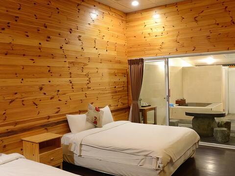 「盈家溫泉」的溫泉木屋簡單樸素卻意外寬敞,很適合全家大小一同前來。