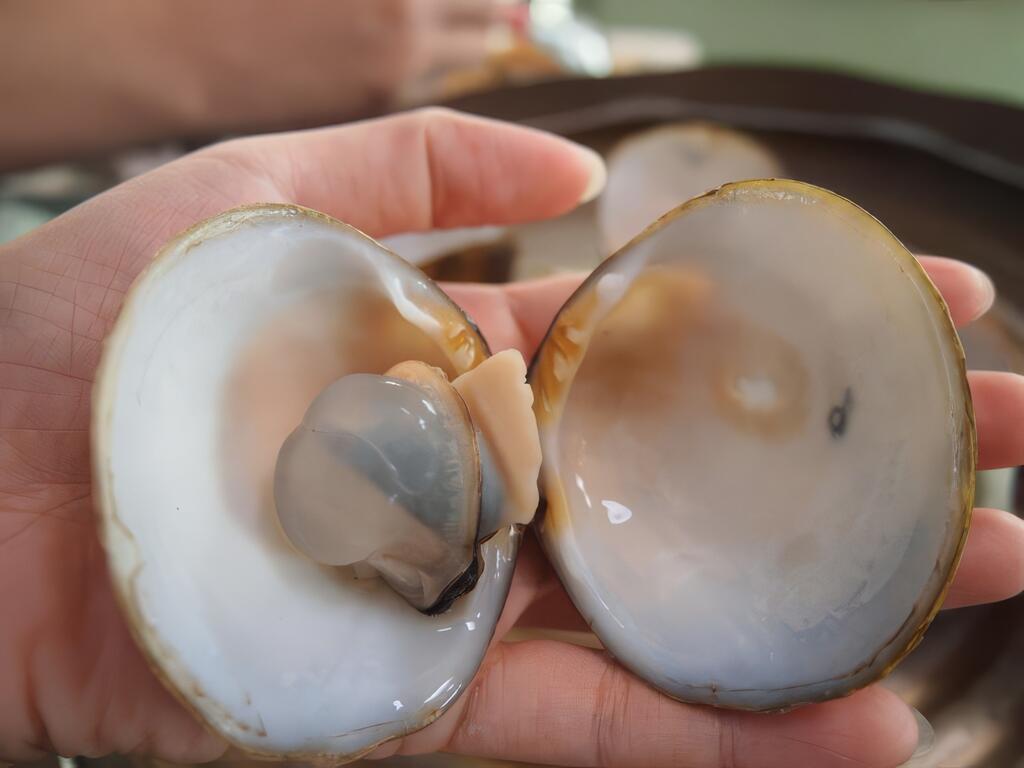 圖說:蛤肉中間黑色處是母蛤的生殖線,富含豐富的營養素