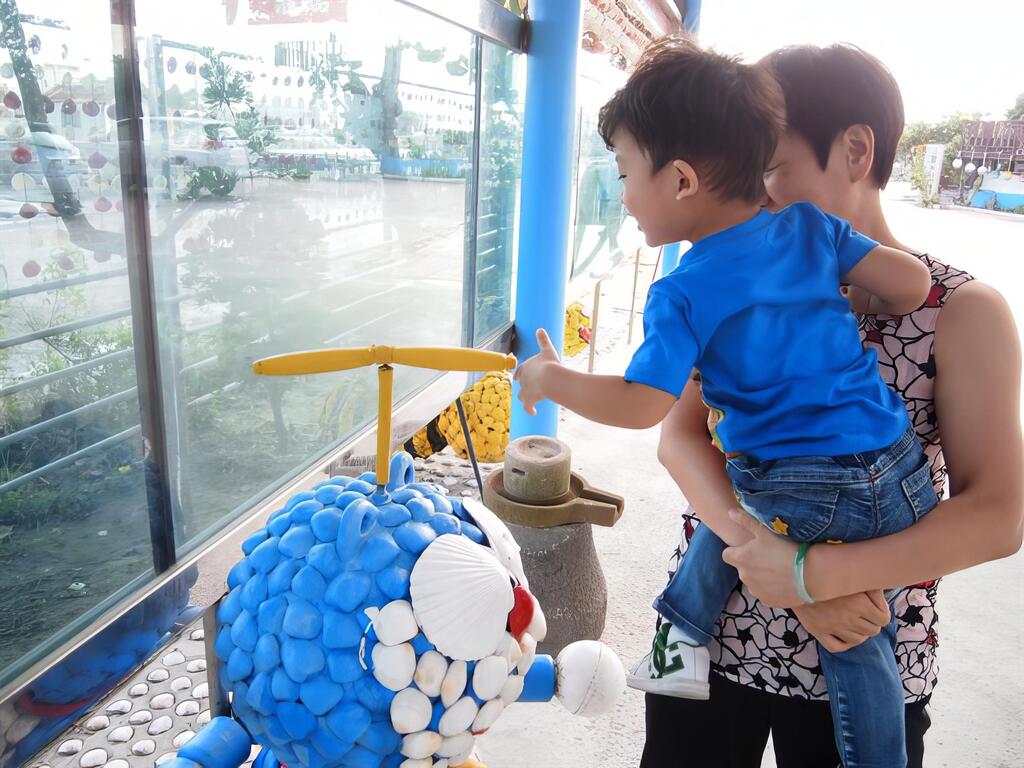 園區內五彩繽紛的彩繪藝術吸引了孩子的目光,工作人員利用食用過的「馬蹄蛤」外殼,巧手搭建小朋友喜愛的卡通人物、創意吊飾等,展現獨特的蛤殼工藝。你也可以報名參加DIY活動,陪伴孩子探索與創造想像力。