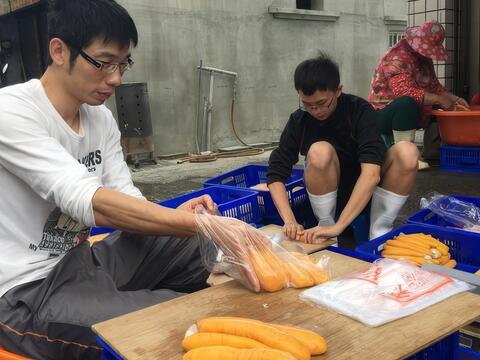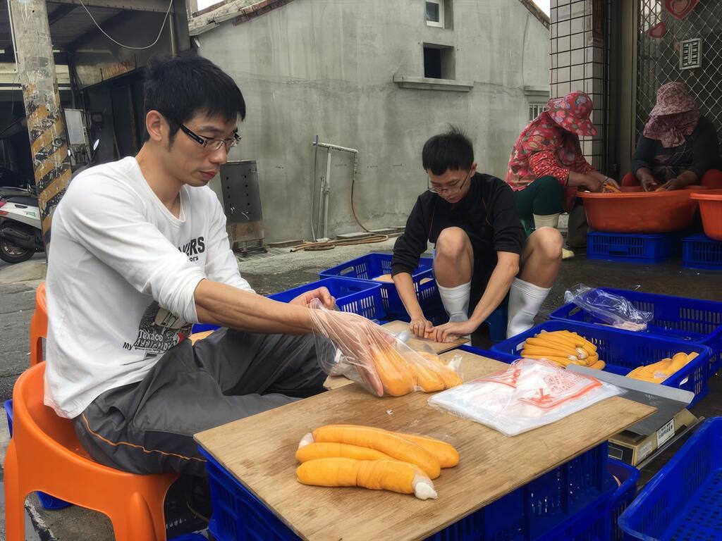 圖說:金黃色澤的新鮮烏魚子正在分級裝袋,準備出貨